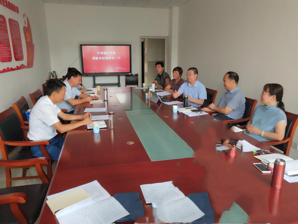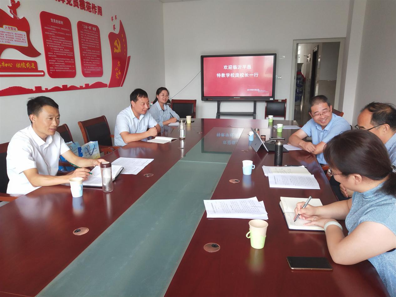 庞俊青校长介绍了平邑县特殊教育学校从无到有,从小到大,几十年来的发展历程以及取得的教学成果,着重介绍了平邑县特殊教育学校关于“逆向融合”的特色办学模式。随后与会人员就平邑特殊教育学校提出的“逆向融合”进行了热烈的讨论。