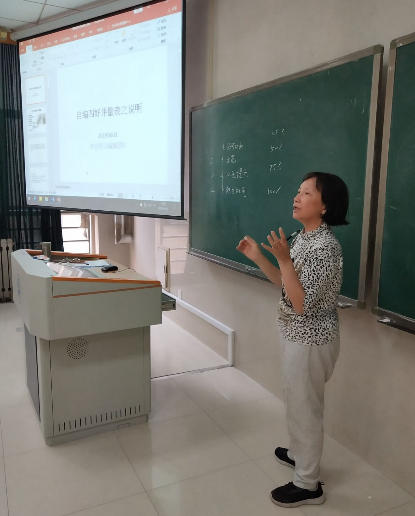 师生讲授了培智教育课程之四好评量表介绍。讲座由特教系主任宿淑华老师主持,国产a片