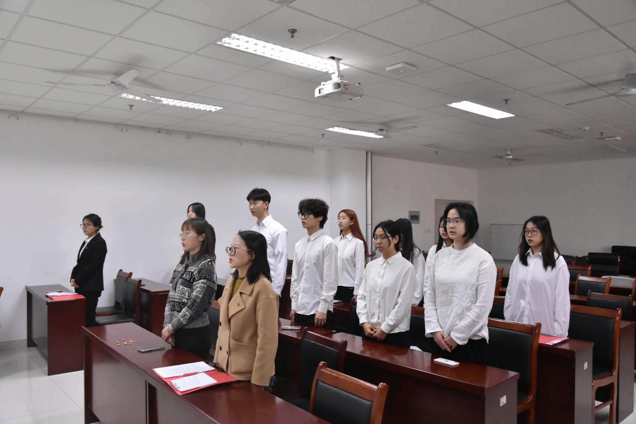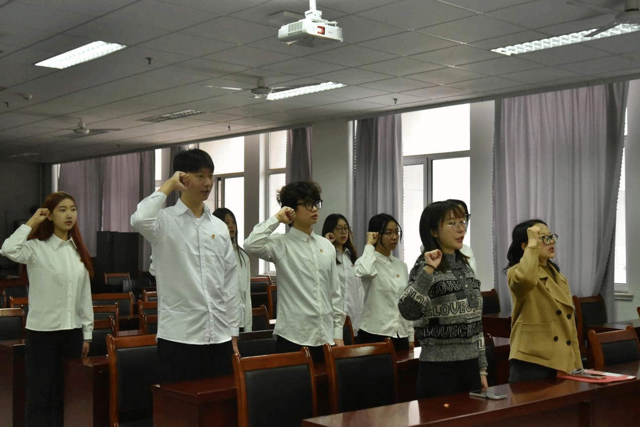 随后,由团学部刘卓然同学领誓,新发展团员进行了庄严的宣誓仪式。李响和田欣冉同学分别作为新发展团员代表和优秀团员代表进行发言。