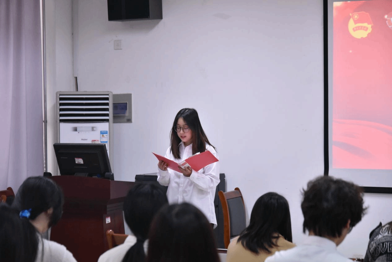 入团仪式在庄严的国歌声中拉开帷幕。全体在场人员起立,奏唱中华人民共和国国歌。卓华丽老师宣读了学院2024年下半年新发展团员名单,刘晓彤老师为新发展团员佩戴了团徽。这一枚枚闪耀的团徽,不仅是对新团员身份的确认,更是对他们加入团组织这一光荣决定的肯定。