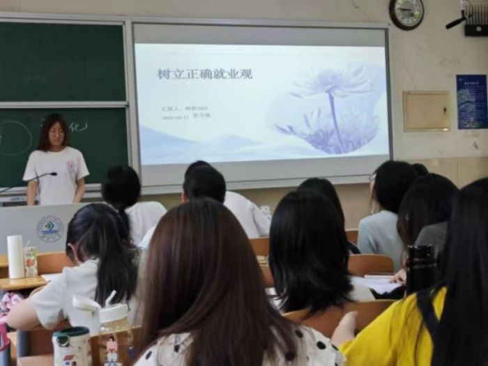 各团支部积极响应,创意创新,以线下讲座、观看纪录片以及相关择业视频等多种形式开展学习交流,取得热烈反响。活动中,团支部组织学生学习习近平总书记关于青年工作的重要思想,以“树立正确的就业观”为背景,结合当今奋进青年劳动模范事例,深入浅出地阐释了青年树立正确的就业观对当今时代的意义和价值,引导学生领悟“正确择业”精神的深刻内涵,并将其转化为内在动力,凝聚长远目标贡献青春力量。各团支部同学观看了纪录片《人生第一次》中《上班》这一篇章,使学生从残障人士的职业生涯中感知到求职、入职、工作经历的不易,既对学生自身就业观进行深入塑造,也勉励学生提高个人特殊教育和心理专业素养,用所学知识为社会发展贡献力量。此外,团支部面向全体同学播放了近几年来有关大学生就业择业现状的相关视频,向学生介绍了各种的大型企业的校招项目,号召同学们结合自身情况,选择适合岗位投递简历,要主动争取就业机会。