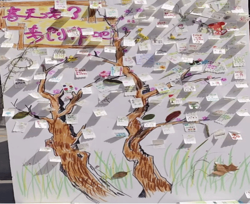 此次活动设计了在大树底图上贴落叶落花、在便利贴上留下精美的涂鸦、在便签纸上许下美好愿景等多个环节,同学们积极参与,通过自己的努力获得精美小礼品。随着一张张便利贴被粘在大树底图上,原本光秃秃的树上开满了希望之花,展现了同学们对春天的向往,承载着青春的活力与激情。活动后,同学们纷纷表示此次活动让自己的内心充满了前进的力量,将以更加积极的姿态面对学习与生活。