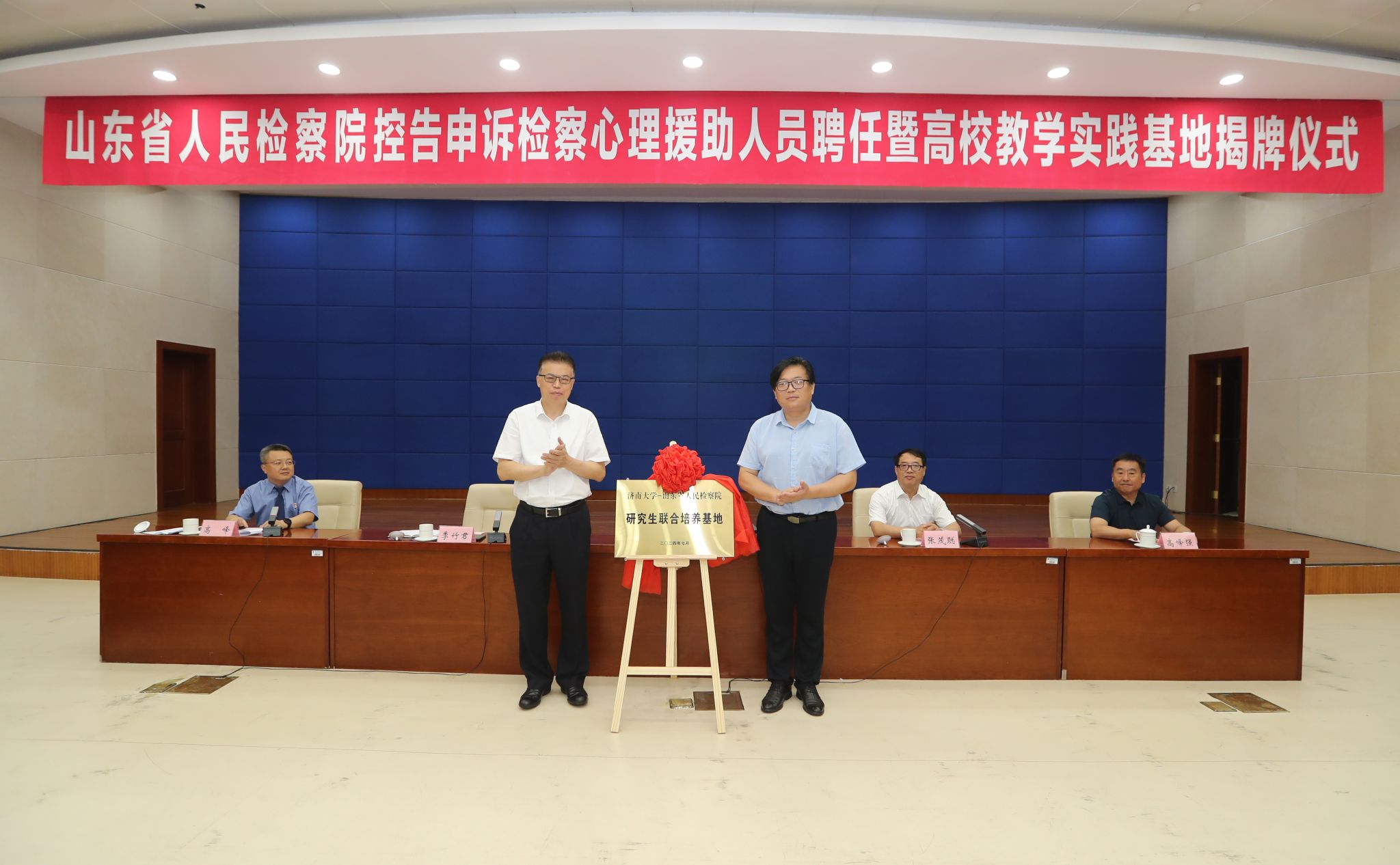 2024年7月25日下午,山东省人民检察院控告申诉检察心理援助人员聘任暨高校教学实践基地揭牌仪式在省检察院报告厅二楼隆重举行。省检察院一级巡视员陶卫东、山东师范大学副校长张茂聪、国产a片