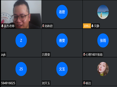 此外,袁杰博士还与同学们进行了线上互动,对大家提出的问题一一做出详细解答并再度鼓励同学们要勇于直面挫折与困境,始终保持积极进取的心态,必将“守得云开见月明”。会议最后,袁杰博士与为文静老师表达了对同学们殷切的期盼与祝福,线上会议圆满结束