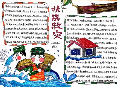 的各位同学踊跃投稿,纷纷用自己的方式为奋斗在抗洪一线的工作人员以及志愿者们送上祝福。至活动结束,“抗洪救灾”三下乡小队共收到数十份作品。同学们用散文、诗歌、三行诗、绘画以及手抄报的形式从不同的角度表达自己对于奋斗在抗洪一线的工作人员以及志愿者们的敬佩与祝愿。在征稿结束后,活动负责人将稿件分类整理,并上传到微信公众号等网络信息平台,借助互联网的力量将同学们的祝福传递给在抗洪一线奋战的人们。